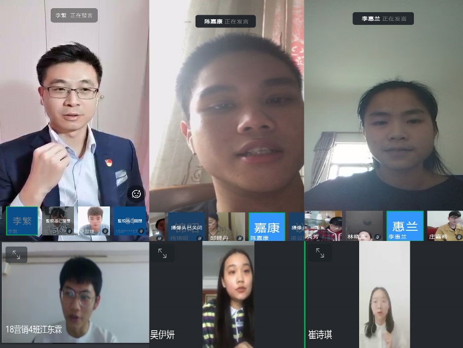 围绕《全球抗疫时期,中国就是个大写的“人”》这一主题,经济贸易学院党总支书记李繁,党总支副书记、院长邱秀芳与全体学生党员、部分学生干部代表共130余人通过网络视频课程一同探索,一同讨论。党总支副书记龚云、办公室主任邓彩云、学工办主任黄小奇、全体辅导员一同参与了课程。