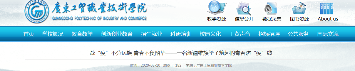 学校官网报道我院新疆学子依木然江·买买提江的战疫事迹