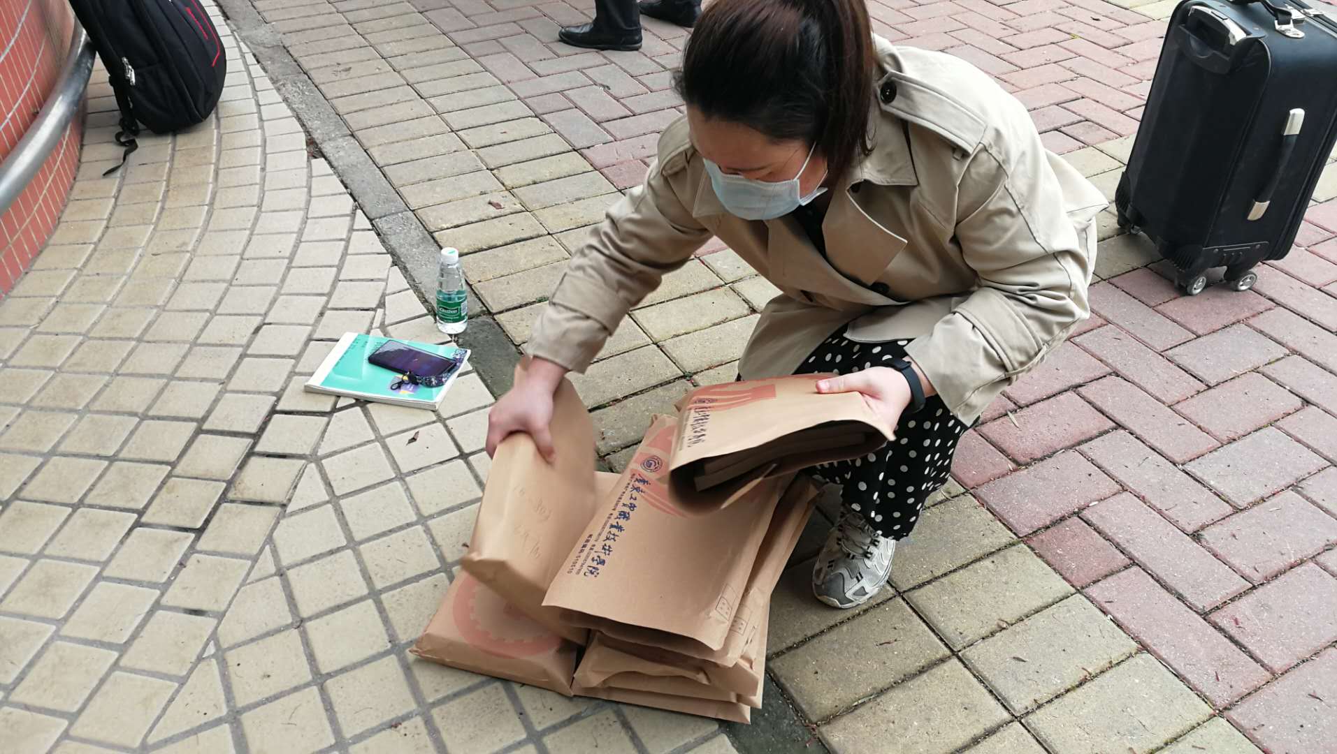 今天上午,吴文婷老师到达白云校区后,在学校物业管理人员和宿管人员的协助下,分别到3栋、6栋、10栋、12栋学生宿舍拿学习资料。由于学习资料较多,吴文婷老师找宿管人员借了一辆摩托车,将学习资料按照学生姓名进行分装、打包,并分批运送到学校门口。最后,将学习用品一一寄给学生。