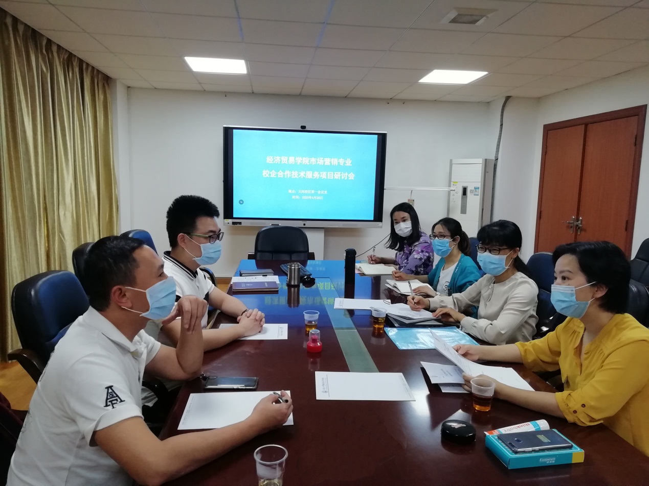 经济贸易学院市场营销专业按照“校企合作、深度融合”的建设思路,于2020年4月28日下午,在天河校区第一会议室,与校企合作企业——广州众网信信息科技有限公司和广州市海珠区海幢讯林信息咨询服务部开展了技术服务项目研讨会。经济贸易学院长邱秀芳、副院长方洁、办公室主任邓彩云、市场营销专业带头人彭娟教授、廖文芳老师以及广州众网信信息科技有限公司梁耀文总经理经理、广州市海珠区海幢讯林信息咨询服务部刘伟昌经理出席了会议。
