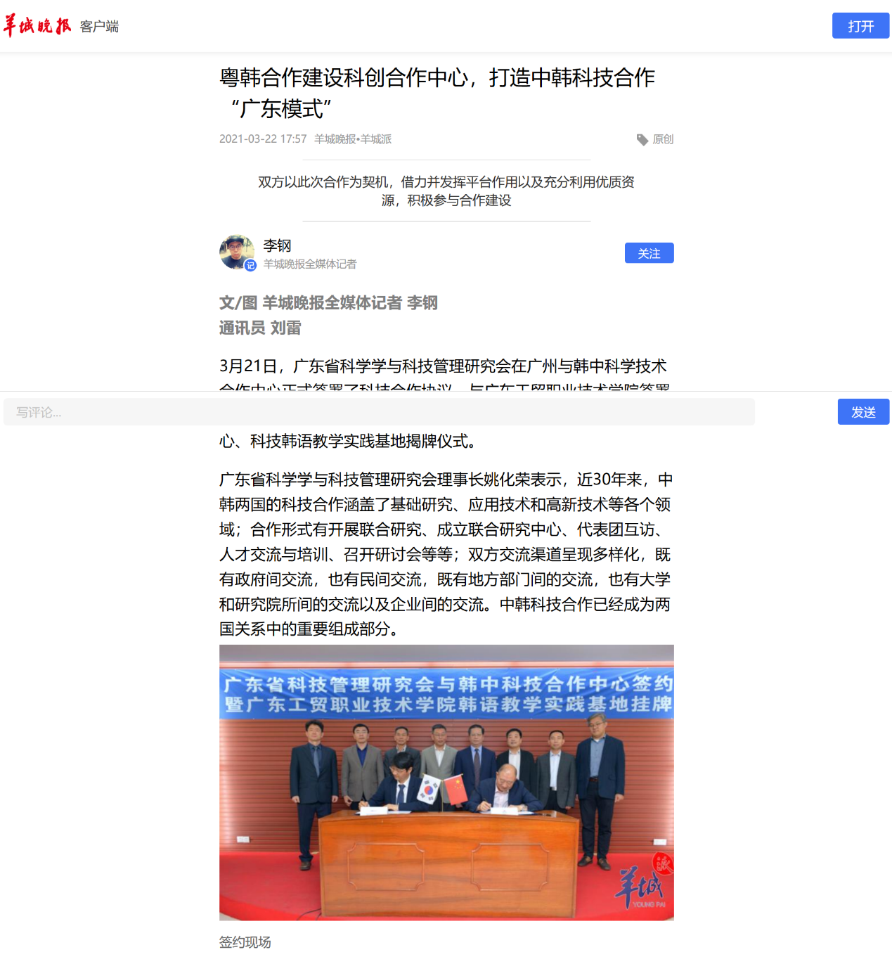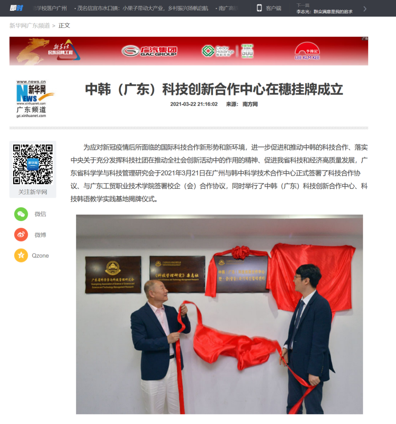 本次签约及挂牌仪式得到各大主流媒体的关注,光明日报、新华网、羊城晚报、南粤君等媒体相继报道。