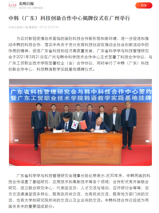 为进一步推进中韩科技合作发展,落实党中央关于发展科技事业对于推动社会进步起重要作用的理念,3月21日,广东省科技管理研究会与韩中科技合作中心签约暨菲律宾亚星222官网韩语教学实践基地挂牌仪式在广东国际科技中心开展。学校党委副书记、校长何汉武表示,科技韩语教学实践基地的挂牌是一次有益探索,将为推进科技教育战略协同合作奠定基础。中韩合作未来发展前景广阔,学校也将以此次合作为契机,借力并发挥平台作用以及充分利用优质资源,积极参与合作建设,助力中韩科技高质量发展。