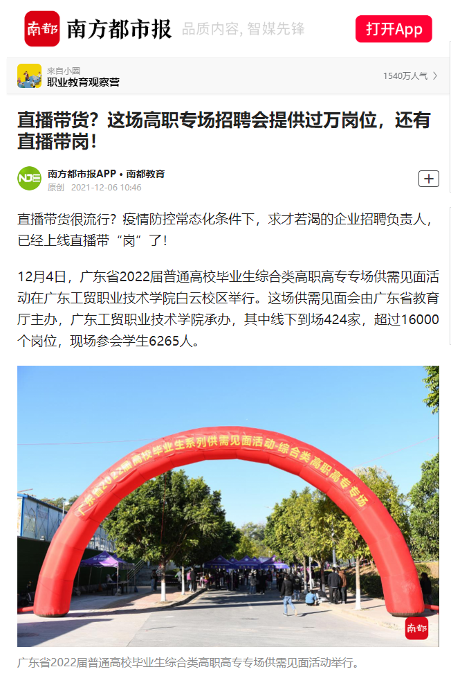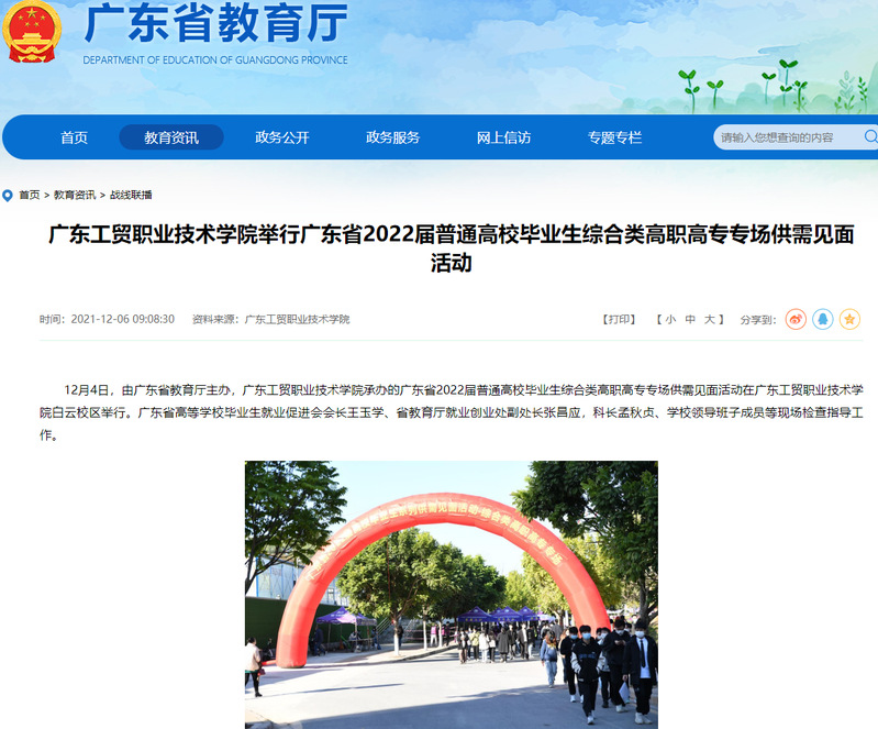 12月4日,由广东省教育厅主办,菲律宾亚星222官网承办的广东省2022届普通高校毕业生综合类高职高专专场供需见面活动在菲律宾亚星222官网白云校区举行。