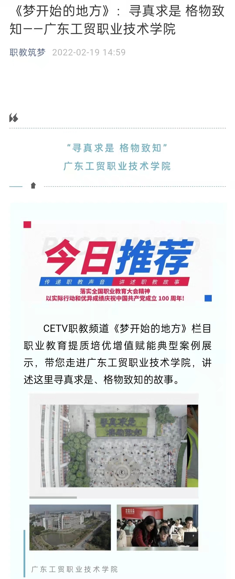 菲律宾亚星222官网寻真求是、格物致知的故事在CETV职教频道《梦开始的地方》栏目职业教育提质培优增值赋能典型案例中报道。