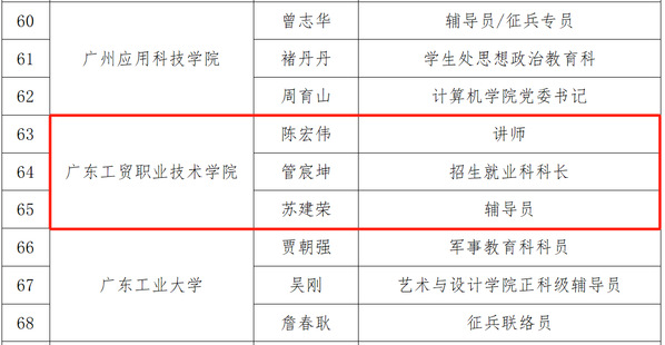 我校2023年度国防教育工作成效显著,被授“2023年度国防教育工作先进集体”荣誉称号;副校长唐毓秋被选为国防教育学会副会长,汽车工程学院陈宏伟老师、招生就业中心管宸坤老师、计算机与信息工程学院苏建荣老师荣获“2023年度国防教育工作先进个人”称号。