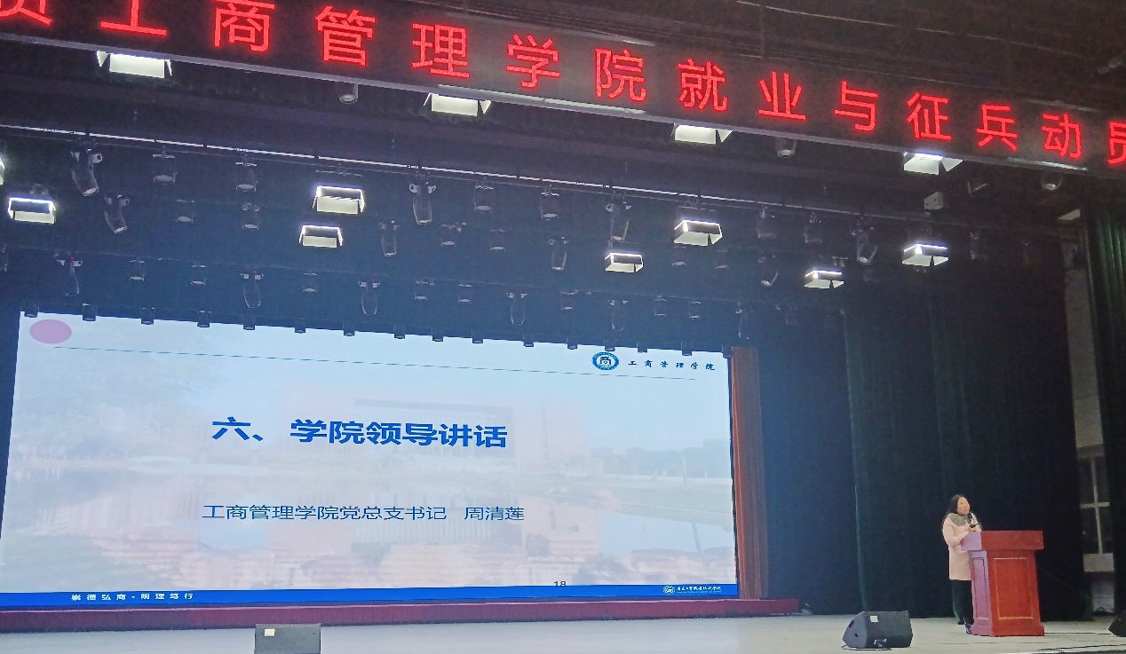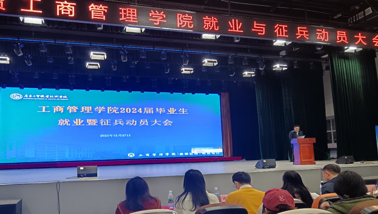 为进一步做好2024届毕业生就业及征兵工作,帮助毕业生了解就业形势、明确就业方向、把握就业机会。1227日下午,工商管理学院于白云校区学生活动中心报告厅召开2024届毕业生就业暨征兵动员大会。学校党委委员、纪委书记陈斌、工商管理学院党总支书记周清莲、工商管理学院毕业班辅导员、班主任及2024届毕业生参加大会。本次大会由工商管理学院党总支副书记谢宏祥主持。