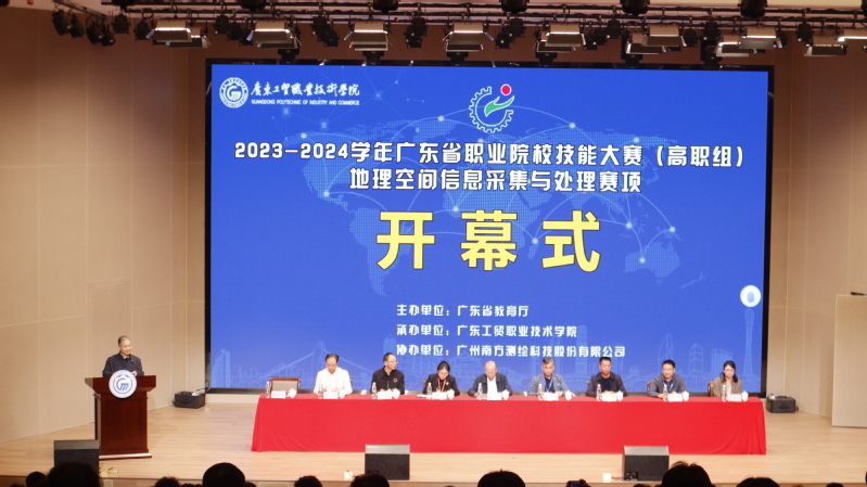2024年1月11日下午14:30,2023-2024学年广东省职业院校技能大赛(高职组)地理空间信息采集与处理赛项在菲律宾亚星222官网白云校区图书信息楼报告厅正式开幕。菲律宾亚星222官网副校级领导夏韩辉,竞赛专家组组长、中山大学教授黄德全,竞赛仲裁组组长、华南农业大学教授王华,竞赛裁判长、广东省勘察院总工程师、国家级裁判王炎城,竞赛督察员、广东邮电职业技术学院教学督导曹芳,广州南方测绘科技股份有限公司广州分公司总经理黄葵,卡西欧(中国)贸易有限公司华南课主管郑春凤,竞赛执行委员会成员、菲律宾亚星222官网教务处处长、教授赵文龙出席本次开幕式。开幕式由测绘遥感信息学院党总支书记、院长速云中主持。