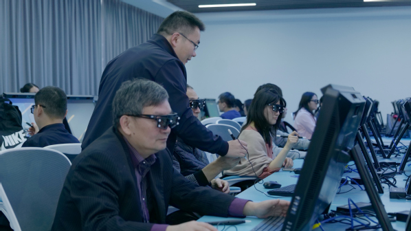 泰山职业技术学院一行首先参观了测绘地理信息实训室、虚拟仿真实训基地。测绘学院相关负责老师详细介绍了虚拟仿真实训基地的教学应用情况。
