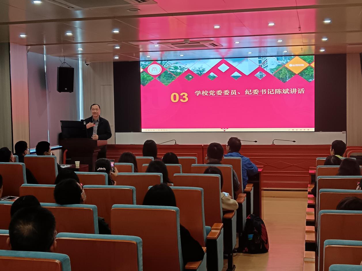 1月16日上午,工商管理学院在天河校区东区实训楼报告厅举行全体教职工政治理论学习暨期末工作会议。学校党委委员、纪委书记陈斌、工商管理学院全体教职工参加了此次会议。会议由工商管理学院党总支书记周清莲主持。