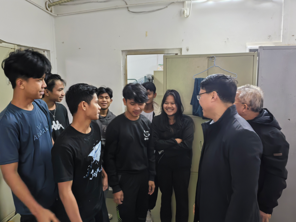2024年2月7日上午9点,学校党委委员、副校长徐勇军,对外交流合作处处长黎明虹、机电工程学院党总支副书记梁超鹏在春节来临之际前往天河校区西区留学生宿舍,慰问机电工程学院机械制造及自动化专业留学生。