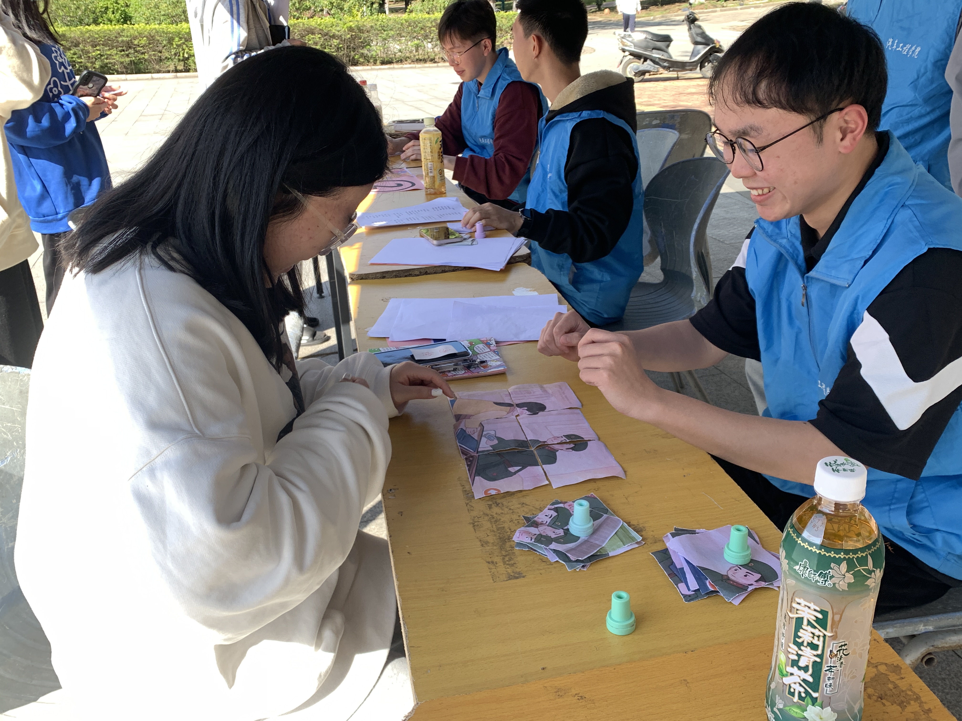 活动开始前,青协成员提早来到子衿广场,进行摊位布置,为雷锋月答题活动做好准备。活动期间,志愿者们向参与活动的同学耐心讲解游戏规则,维持现场秩序,指引同学们进行扫码登记,保证活动的顺利进行。活动结束后,青协成员整理活动物资并清扫现场,确保一切恢复原状。最后,大家以一张大合照圆满的结束了本次活动。
