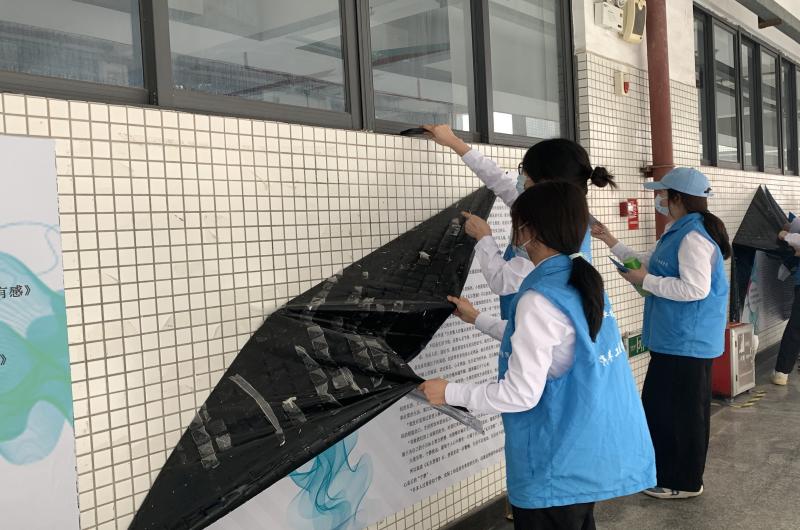 活动伊始,为更好地开展清扫工作,志愿者们提前来到集合地点,身穿统一服装,手持清扫工具,为接下来的清扫做好准备。活动期间,志愿者们井然有序地清扫教室地面,清除墙面海报并刮除墙面污渍。活动结束后,志愿者们归还工具与志愿服装,并用大合照结束了此次志愿活动。