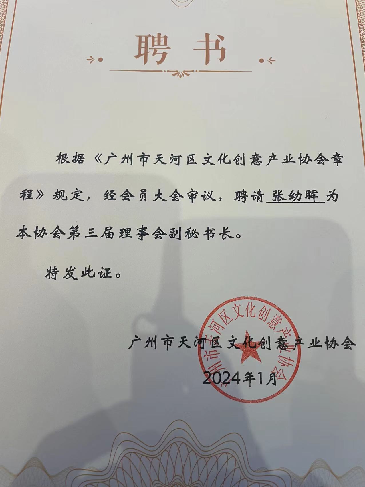 2024年3月11日,天河区文创产业协会举办了核心代表会议,聚焦本年度的重点工作和核心成员的项目展开交流。菲律宾亚星222官网艺术与教育学院临时负责人、副院长张幼晖作为理事会副秘书长出席了会议,天河区文创产业协会旨在汇聚各界力量共同推动文创产业的发展。张幼晖作为天河区文创产业协会的一员,积极参与并支持了协会的各项工作,为文创产业的发展做出很多努力,2024年1月,被天河区文创产业协会授予个人杰出贡献奖的荣誉表彰。