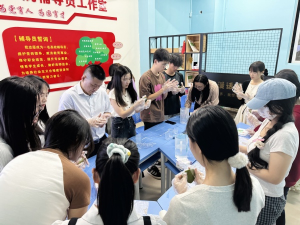 在知识问答环节结束后,唐毓秋与同学们一起动手制作青团,他一边示范制作技巧,一边与同学们交流心得。同学们也纷纷动手尝试,不一会儿,一个个绿油油的青团便呈现在大家眼前,现场气氛温馨而融洽。在制作青团的过程中,唐毓秋与同学们深入交流,关心询问他们的学习、生活情况,并就未来的成长发展和职业规划给予了宝贵的建议。同学们纷纷表示,通过此次活动,他们不仅学到了制作青团的手艺,更感受到了学校对他们成长的关心与支持。