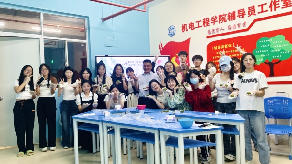 为了让同学们更加深入地了解清明节的文化内涵,也进一步推动一站式学生社区的文化建设。4月2日,机电壹肆肆零工作室迎来了一场别开生面的文化活动——“巧手做青团,传承清明记忆”。学校党委委员、副校长唐毓秋和机电工程学院辅导员以及学生代表们共同参与了此次活动。