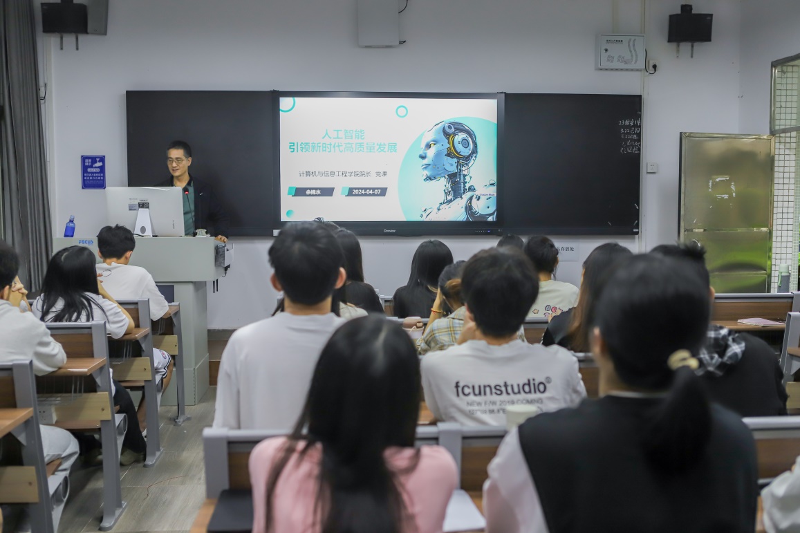 4月7日下午,计算机与信息工程学院党总支副书记、院长余棉水在教学楼102开展2024年春季学期“思政第一课”,学生入党积极分子代表聆听了讲座。