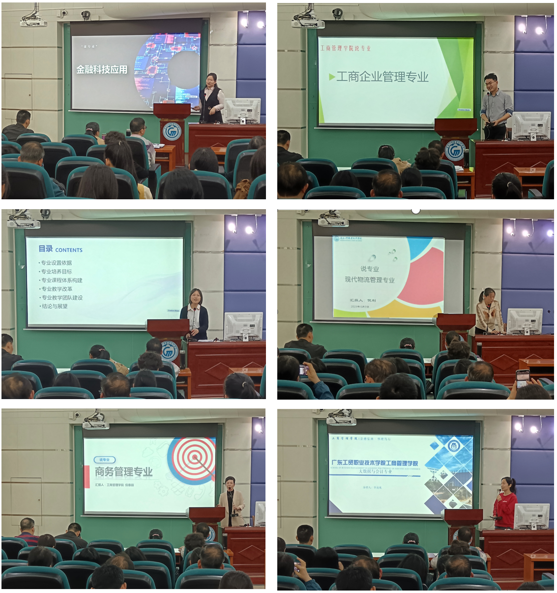 随后,金融科技应用、工商企业管理、人力资源管理、现代物流管理、商务管理、大数据与会计六个专业带头人从行业发展与专业定位、专业设置依据、职业能力与人才培养、专业课程体系构建、教学团队建设、教学保障条件建设、教学改革与社会服务、教学管理与质量评价、专业特色与发展举措等方面进行“说专业”汇报。与会评委分别对每个专业带头人的“说专业”情况进行打分。
