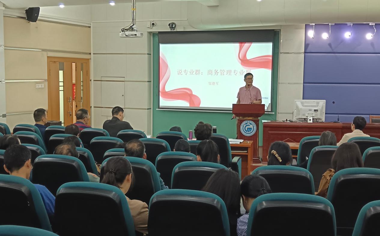 为进一步加快专业设置与产业需求对接,全面推动学院专业内涵建设,促进专业(群)建设,4月9日下午,工商管理学院在天河校区报告厅举行“说专业群、说专业”比赛与观摩学习活动。学院全体教职工参加了此次会议。会议由工商管理学院副院长倪春丽主持,工商管理学院院长邹德军、党总支副书记谢宏祥以及专任教师代表梁巧丽、蔡志会、冯旭东担任此次活动的评委。