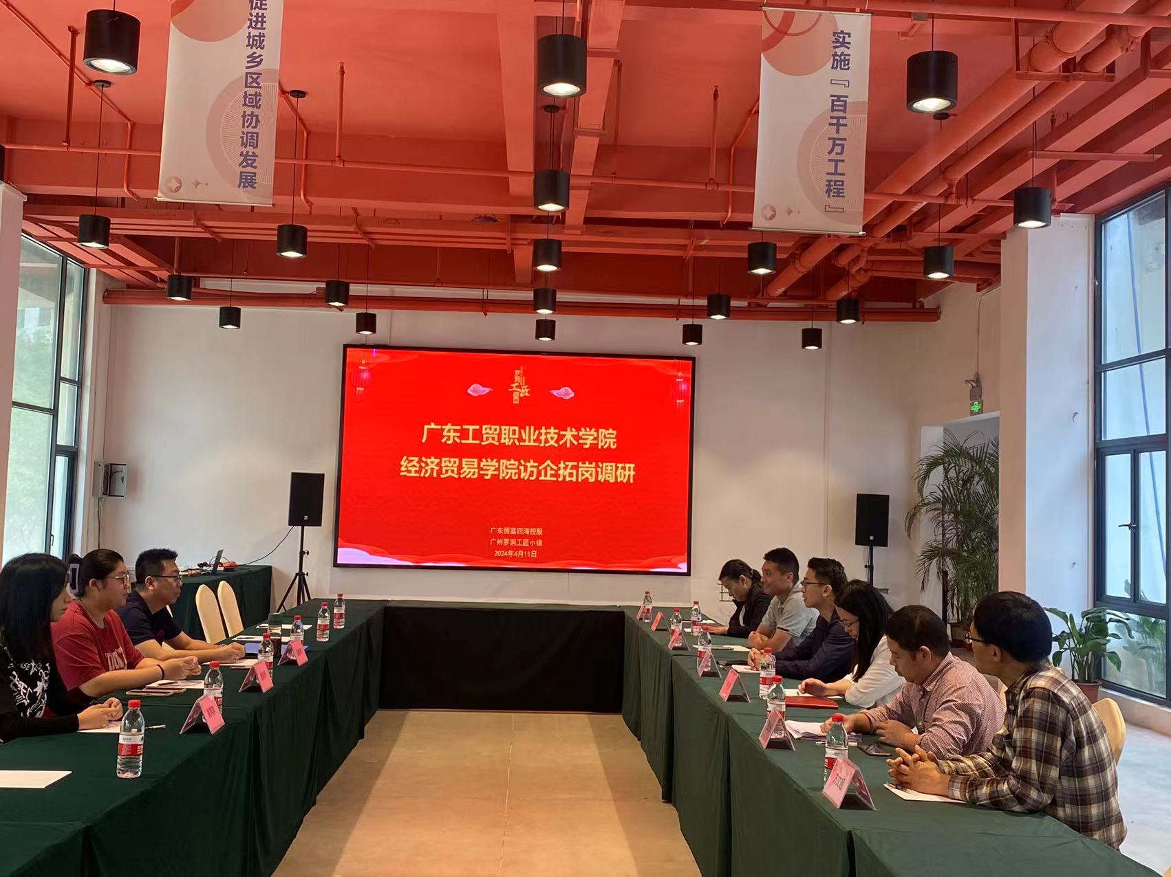 近日,为进一步落实“访企拓岗促就业”专项行动,经济贸易学院领导班子成员积极行动起来,致力于为毕业生提供更优质的岗位资源和精准的就业信息,确保毕业生能够实现更加充分和更高质量的就业。4月11日,经济贸易学院党总支书记李繁带领一行人员到广东恒富四海控股广州罗洞工匠小镇进行了实地走访调研。此次访问是学院加强与企业联系、深化校企合作的一部分,目的在于促进人才培养与市场需求的对接,提升毕业生的就业质量。