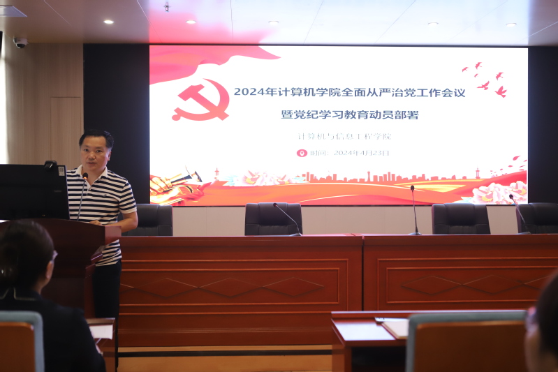2024年4月23日下午,计算机与信息工程学院在东区实训楼一楼报告厅召开2024年全面从严治党工作暨党纪学习教育动员部署会议,学院领导班子及全体教师党员参加了会议。