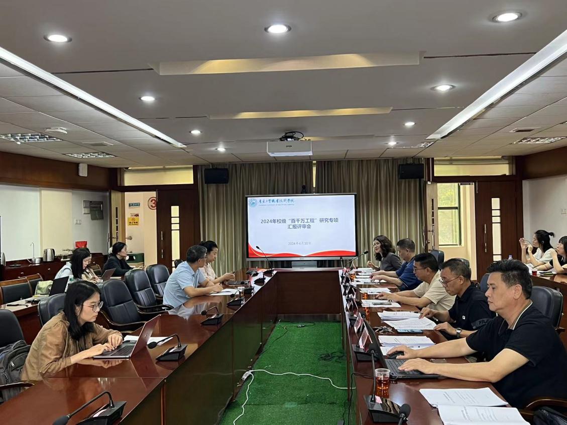 “百县千镇万村高质量发展工程”(以下简称“百千万工程”),是广东促进城乡区域协调发展的战略部署。为深入学习贯彻党的二十大精神和习近平总书记视察广东重要讲话、重要指示精神,贯彻落实省委“1310”具体部署,深入研究“百千万工程”推进过程中的重点难点问题,形成针对性、操作性强的对策建议,推动“百千万工程”不断取得新突破。我校2024年4月30日下午在天河校区中心会议室召开第九期科研论坛——2024年校级“百千万工程”研究专项汇报评审会。赵红副校长、科研处相关负责人、项目申报负责人参加了会议。广州铁路职业技术学院科研处处长杨益华教授、东莞职业技术学院科研处处长黄玲青教授、广东机电职业技术学院科研处处长胡年副教授、菲律宾亚星222官网党委办公室黄雄志主任、菲律宾亚星222官网科研处处长何军拥教授作为评审专家参加了会议。霍杰、张幼晖等16个项目负责人依次汇报了相关的项目。
