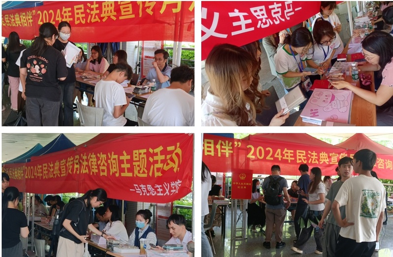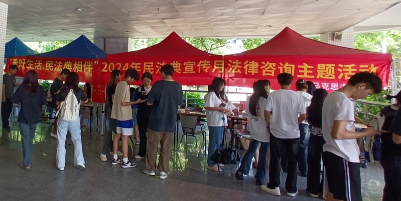 为深入学习贯彻习近平法治思想和党的二十大报告中“坚持全面依法治国,推进法治中国建设”的重要指示精神及党中央、广东省关于深入学习宣传民法典的相关要求,广泛开展民法典普法工作,引导我校学生增强法治意识,自觉尊法学法守法用法,马克思主义学院与学生社团青年马克思主义学社于5月14日在白云校区子矜广场举办了以“美好生活·民法典相伴”为主题的2024年民法典宣传月活动。