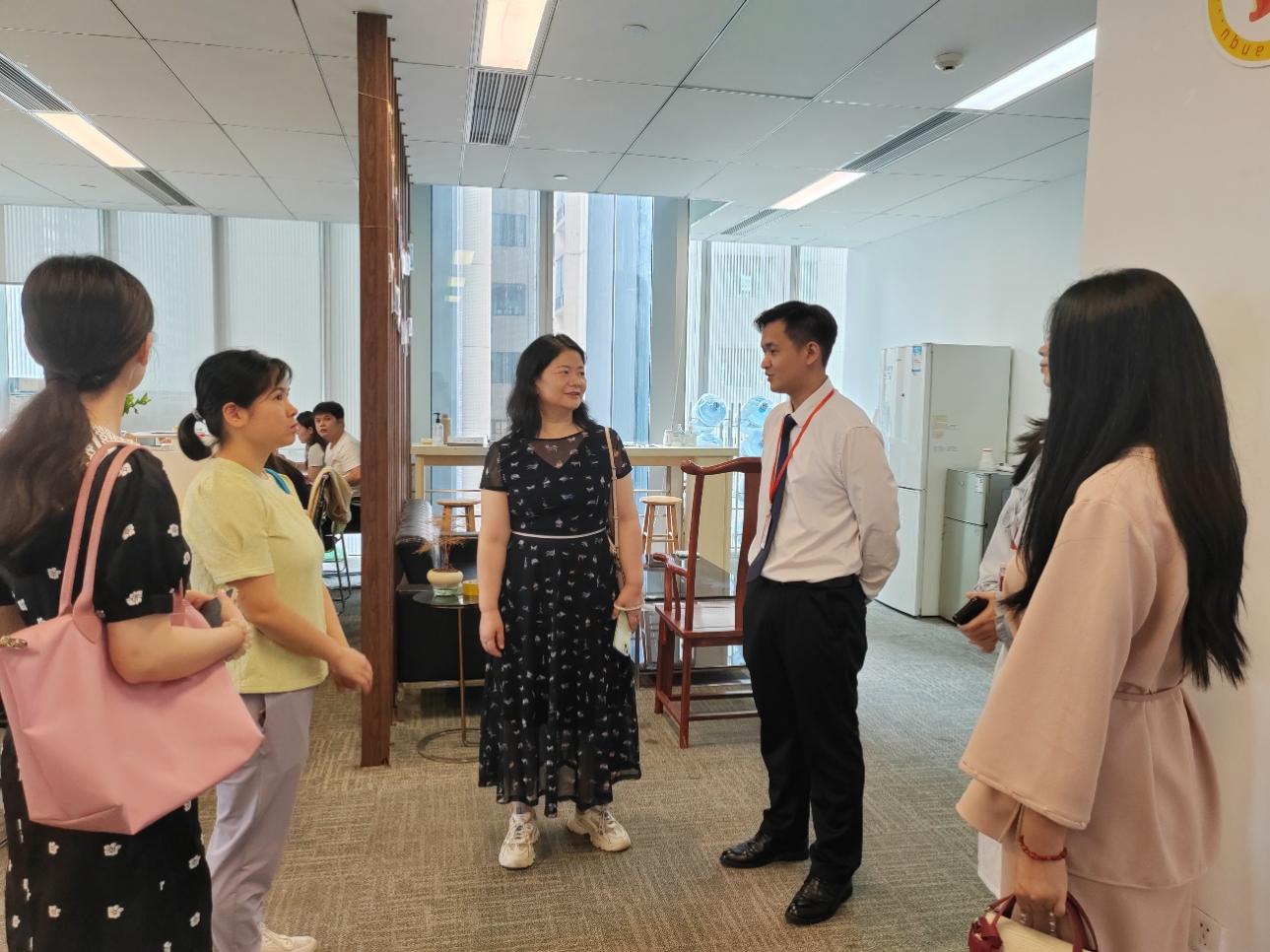 为落实党中央、国务院关于“稳就业、促就业”决策部署,扎实推进高校“访企拓岗促就业”专项行动。5月15日,工商管理学院财税服务系主任胡建平带领财税服务系专任老师杜菲、叶方方、曾鸣及辅导员杨兴花一行赴广州中港汇银科技有限公司开展访企拓岗和合作洽谈。广州中港汇银科技有限公司总经理庞景宇、副总经理黄思瑶、业务部销售总监黄世钦、人力资源部经理郑惠萍等相关部门负责人以及目前在该企业就业的毕业生代表出席交流座谈会。