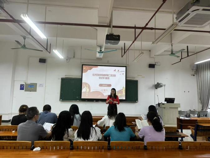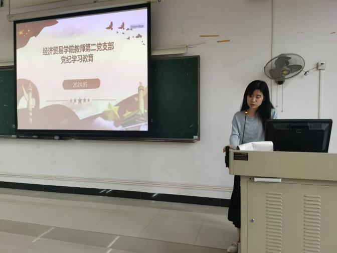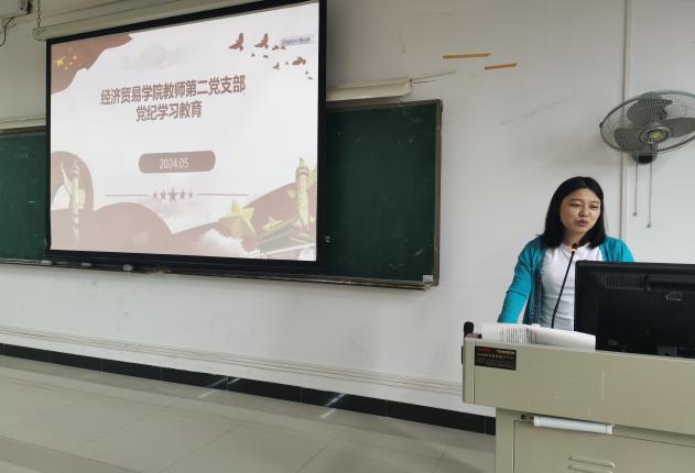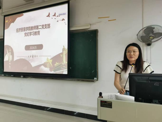 经贸学院副院长、教师第二党支部书记蒋晶主持会议并作主题发言,与会人员围绕《条例》学习情况进行交流发言。经贸学院教师第二党支部全体成员,按照学习进度,认真学习了《中国共产党纪律处分条例》第四章-第五章。同时学习了习近平总书记关于党的建设的重要思想和习近平总书记关于党的自我革命的重要思想理论内容。