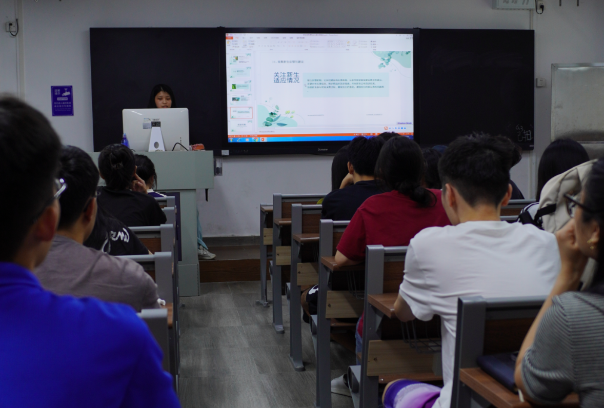 此次宣讲会由三位2023级助理班主任围绕工作内容和工作重点难点两方面进行了助理班主任的工作分享。首先由助班彭志荣从新生“入学前”讲解了到校前的联络工作,以细心和耐心的工作态度搭建新生与学校之间的沟通桥梁,为高效完成新生入学事宜夯实基础。接着助班林泽妍以“入学日”介绍了迎新当日的工作内容和注意事项,以认真负责的态度确保新生入学工作的顺利完成,同时能初步了解新生的个人情况,辅助后续的班级管理工作。最后助班林锴烯以个人工作经验讲解了“入学后”新生班级的重点工作任务,以旧带新,结合案例帮助同学们加强对助班工作的认知。