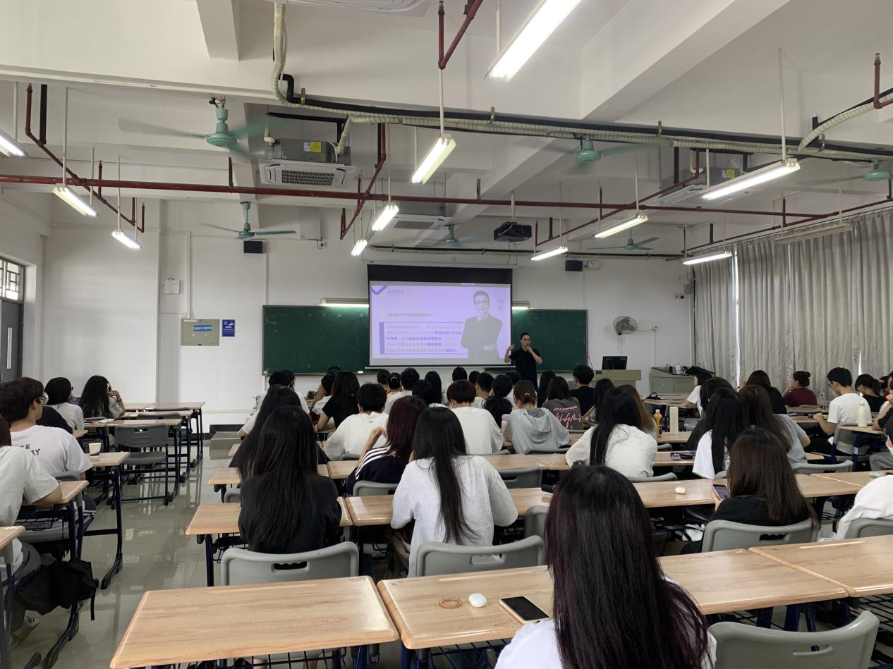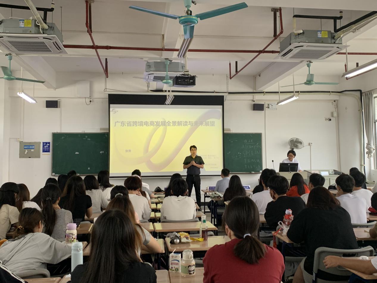 在本次动员大会上,还邀请了业内专家为同学们进行了专题讲座。广东省跨境电子商务协会张贵秘书长给同学们做了《广东省跨境电商发展全景解读与未来展望》讲座,他从跨境电商的发展趋势、行业现状、市场机遇等多个角度,为同学们进行了深入浅出的讲解跨境电商发展前景以及从事跨境电商职业岗位的需求。同学们听得津津有味,不时发出阵阵掌声。“鲸鱼出海”负责人李慧慧详细介绍了校内实训项目的主要内容及实训安排。