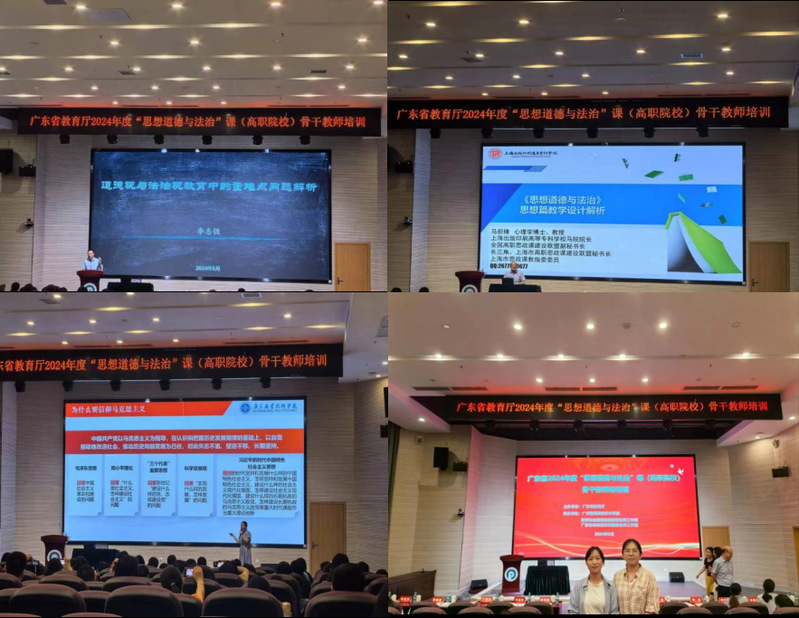 为深入学习领会习近平新时代中国特色社会主义思想,落实落细立德树人根本任务,推进我校思政课的建设和发展,6月13日-15日,马院教师黄丽瓶、许新参加2024年度广东省“思想道德与法治”课(高职院校)骨干教师培训班。培训班由广州番禺职业技术学院承办。