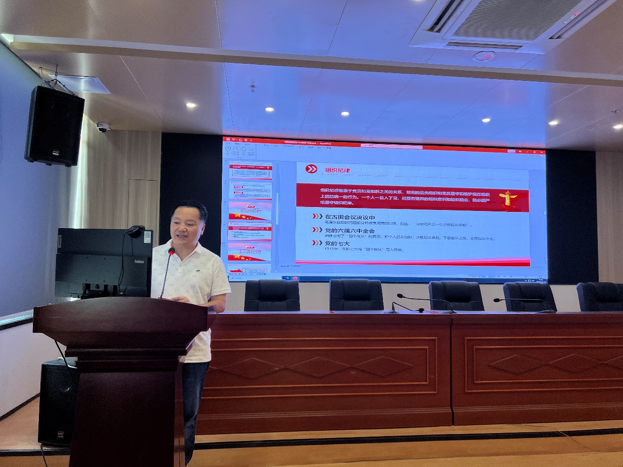 党的二十大以来,习近平总书记一以贯之在中央纪委全会上反复强调加强纪律建设,明确要求把纪律建设摆在更加突出位置,为更深入学习贯彻习近平总书记关于党的自我革命的重要思想,坚决落实全面从严治党战略方针,深刻领悟“两个确立”的决定性意义, 2024年6月18日上午,计算机学院党总支书记张宁开讲党纪学习教育专题党课,带领计算机学院全体党员一起学习了党的“六大纪律”。