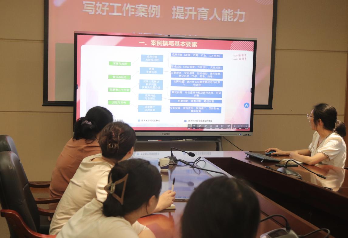 接着,桂晶晶从案例撰写的基本要素出发进行讲解,首先介绍了不同案例类型所涉及的工作内容,帮助老师们在撰写案例时能快速归类。随后,她从案例标题、案例背景、做法与经过、工作成效和经验启示等方面介绍了撰写方法和技巧。她建议大家在撰写案例时,应当按照从宏观到微观的顺序展开,即先从国家政策入手,然后逐步细化到省级政策,最后聚焦到学校的政策。通过这样的写作顺序,可以使案例分析更加系统和完整,同时也有助于读者更好地理解案例的全貌和意义。同时,她针对各位老师的案例进行分析,列举了所存在的问题,并提出了三点关键性的改进建议:第一,格式规范化,运用多级标题;第二,语言正式化,要图文并茂并高度凝练语言;第三,成效总结强化,用数字量化成果。这些建议旨在帮助辅导员提升工作案例撰写质量,使其更加专业化,同时也能更有效地展示工作成果。