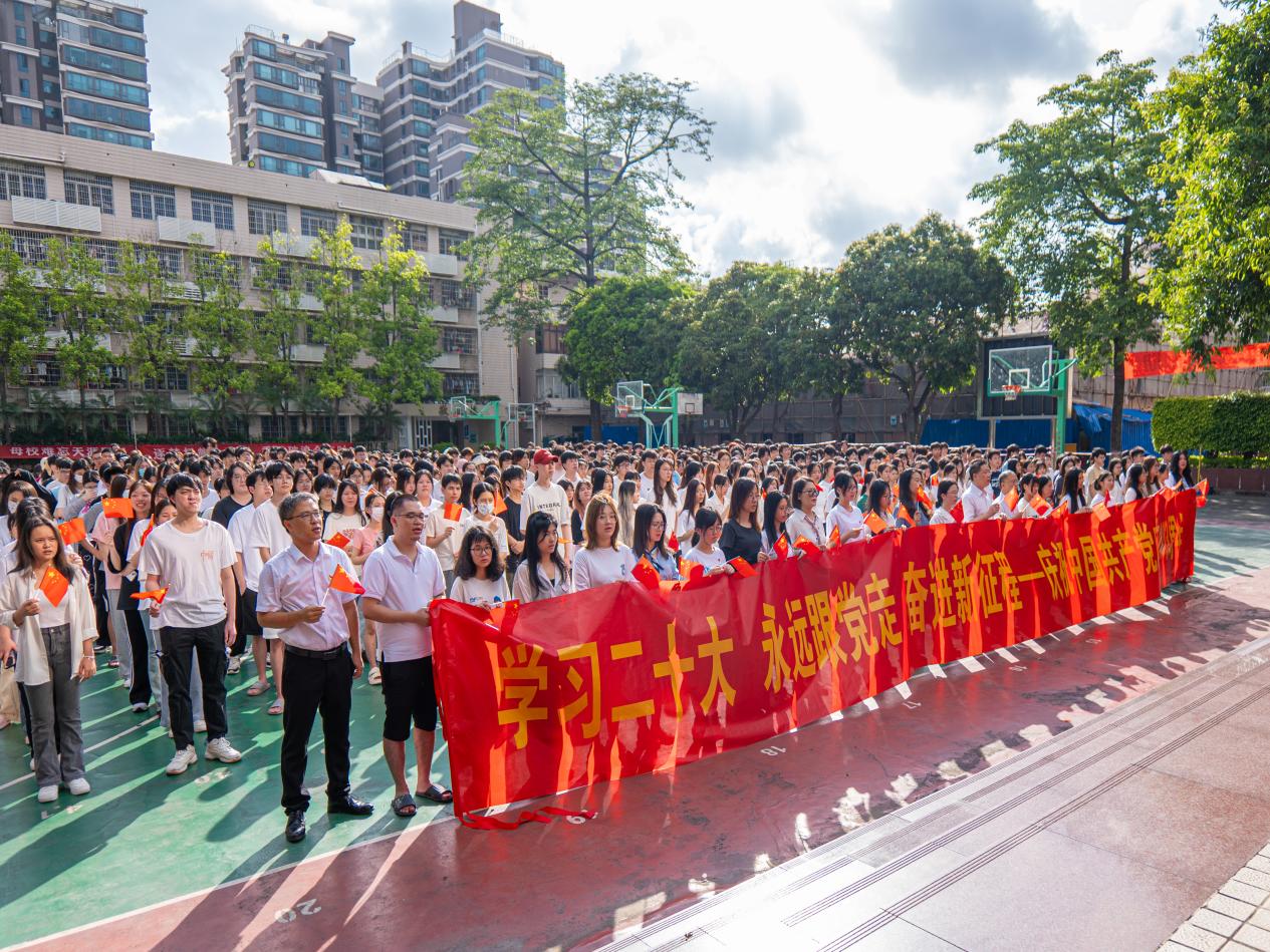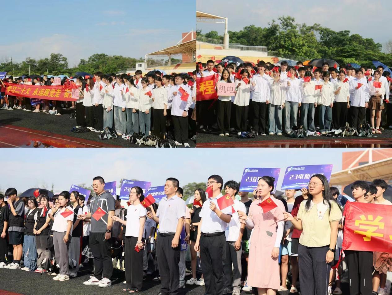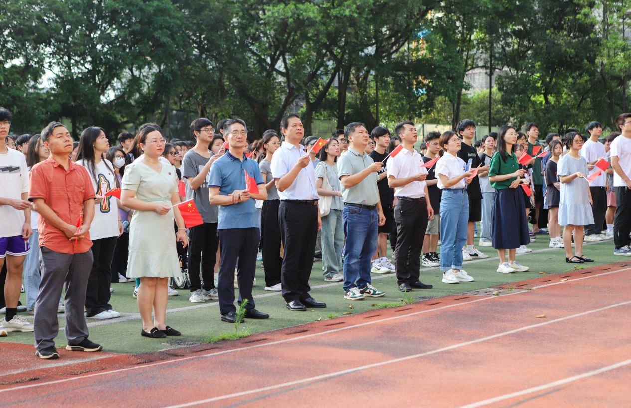 学校党委何汉武书记、唐毓秋副校长、孙师家副校长分别在天河、白云、荔湾校区的“国旗下的讲话”中寄语广大师生忠诚拥护“两个确立”、坚决做到“两个维护”,发扬伟大建党精神,永葆“赶考”的清醒和坚定,健全全面从严治党体系的有效途径,完善固本培元、凝心铸魂的教育体系,坚持不懈推进党的创新理论武装,持之以恒加强党性教育,以正在开展的党纪学习教育为契机,增强党性、严守纪律、砥砺作风,不断把新时代党的建设新的伟大工程推向前进,从而引领全体师生落实省委“1310”具体部署,高质量做实“百千万工程”,在以中国式现代化全面推进强国建设、民族复兴伟业的火热实践中绽放绚丽之花。