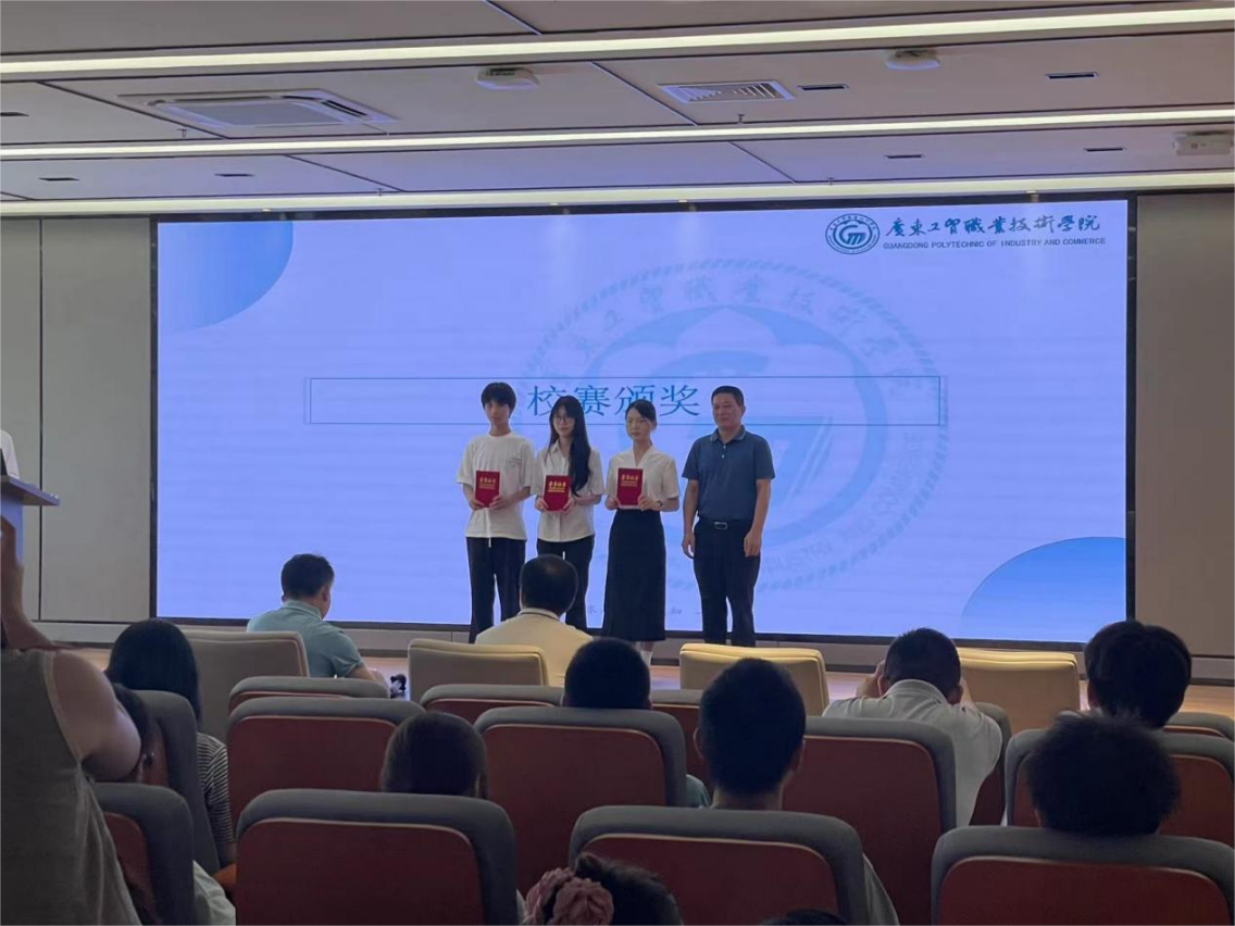 接着,校赛颁奖环节,将现场气氛推向了高潮。获奖团队代表依次上台领奖,分别由唐毓秋副校长为金奖团队颁发奖状,刘建军部长、陈冠锋书记为银奖团队颁发奖状。获奖团队脸上洋溢着喜悦与自豪,这一荣誉不仅是对他们个人能力的认可,更是对他们团队精神的肯定。
