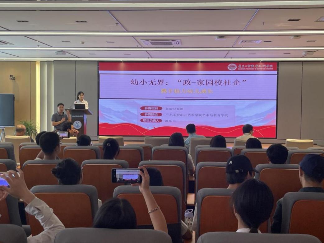 紧跟着是优秀项目路演环节。获得金奖各项目组逐一登台亮相,他们通过生动的讲解、精美的PPT展示等形式,将项目的创意、技术、市场等方面进行了全面而深入的阐述。路演完毕后,陈冠锋书记对“渔工号子——渔业新农人的领跑者”项目作了点评,他指出项目社会意义深远,但需要加强技术维度和教育维度的提炼;刘建军部长对“幼小无界:‘政—家园校社企’”项目作了指导,他强调该项目实践意义大,但实施难度较高,需要加强沟通合作;唐建树副书记对“‘福寿绵床’——国内领先的气囊交互式自适应控制防褥疮动态康复床”项目给予了综合评价,着重强调了项目的创新性、实用性以及社会意义,他指出团队应该加强市场推广从而促进合作。