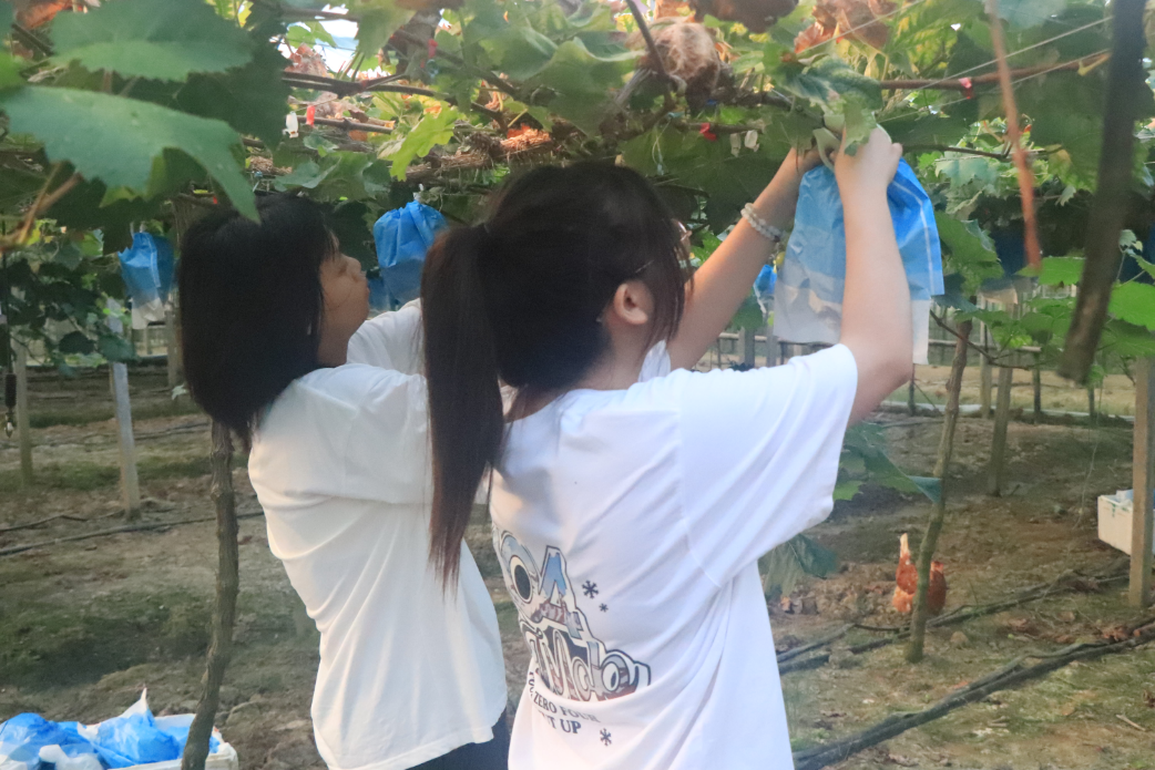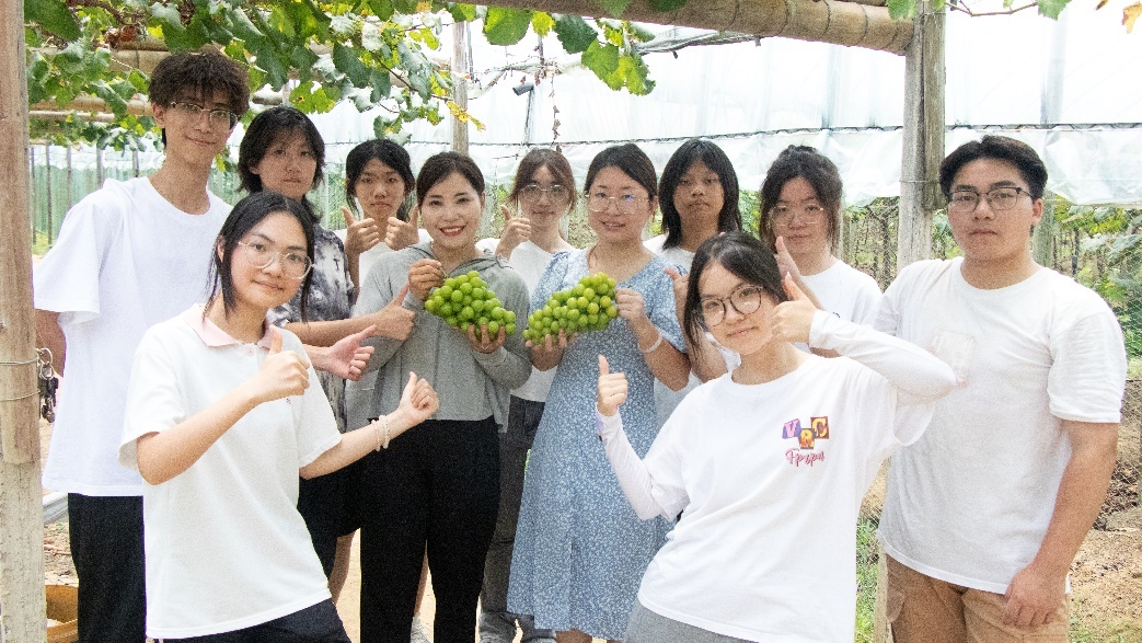 忙碌过后,园主许姐邀请在场的每一位实践队队员一起品尝这份来自田野的甜蜜果实,共同感受丰收的喜悦。实践队队员们纷纷表示,这次亲身体验不仅让他们品尝到了美味的葡萄,更让他们深刻感受到了村民们那份质朴、勤劳与乐观向上的精神风貌。