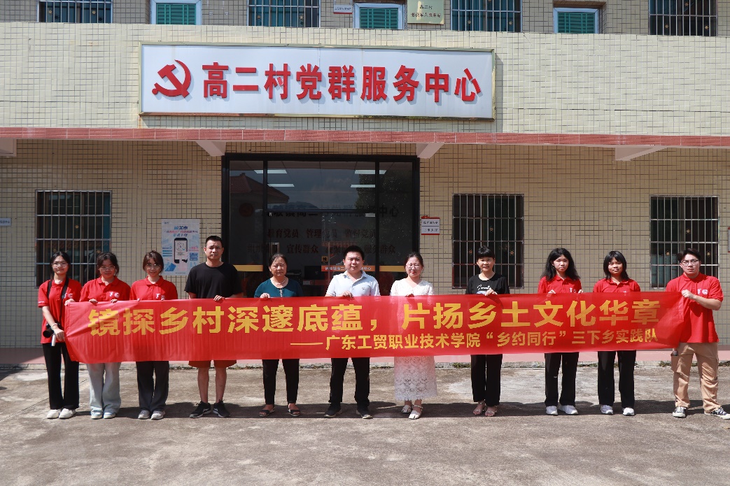 “乡约同行”实践队与镇团委副书记温明昭和高二村干部们合影留念