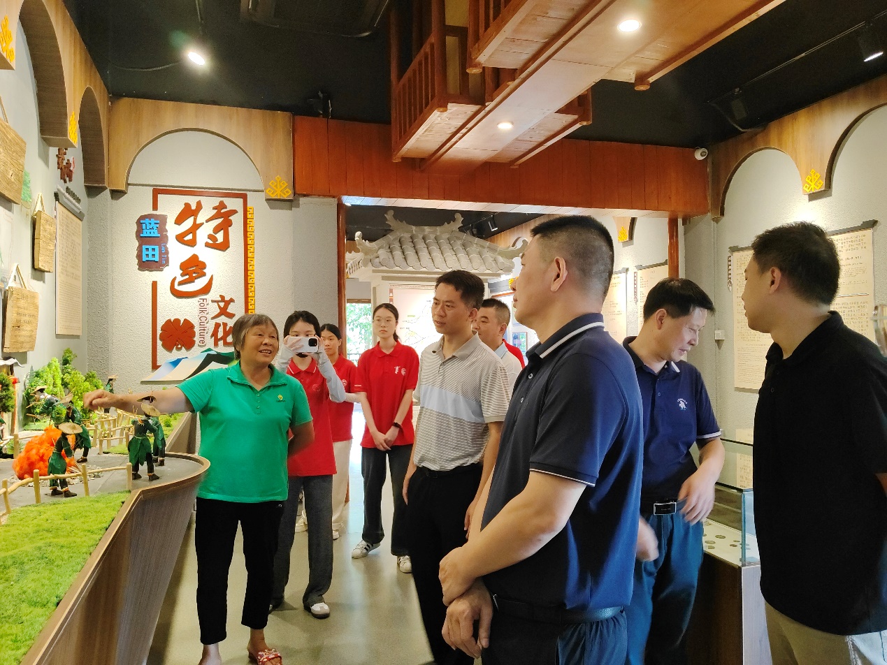 座谈会结束后,政校企领导走到蓝田瑶族文化展览馆,倾听“青翼”突击队队员及“织带仔”非遗传承人热情讲解“织带仔”“舞火狗”“瑶族穴居”的传统文化故事。