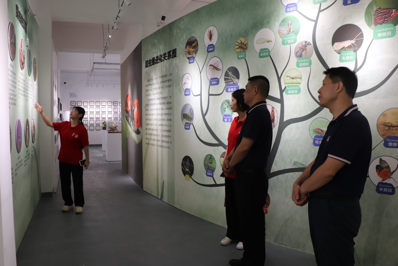 随后,政、校、企领导们来到蓝田瑶族乡小洞村昆虫馆,青翼队员认真讲解科普昆虫馆的昆虫墙与昆虫标本的价值与意义。
