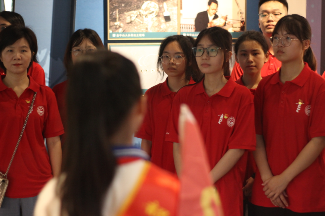 聆听“向日葵”青少年志愿服务讲解队对马坝人历史的讲解