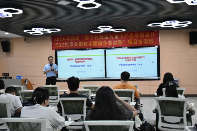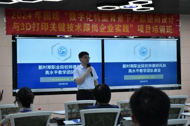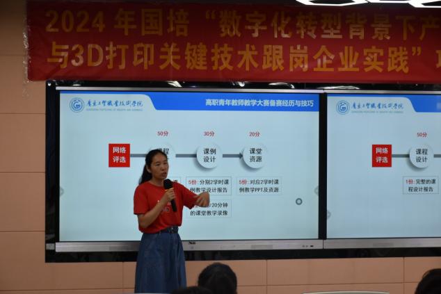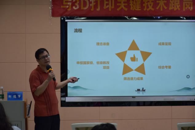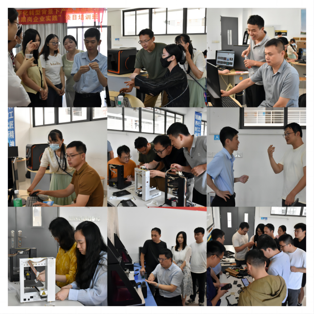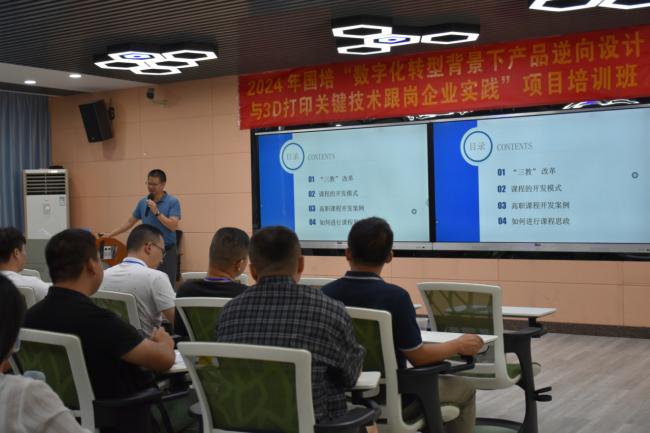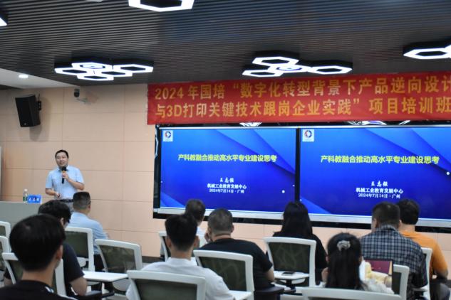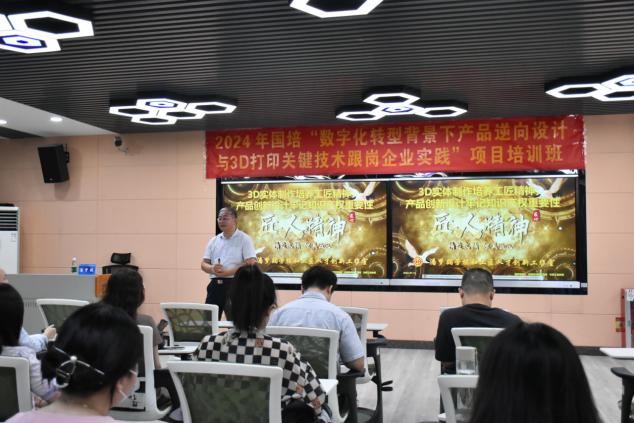 7月9日至7月15日,“数字化转型背景下产品逆向设计与3D打印关键技术跟岗企业实践(国培)培训班”岗前培训阶段火热进行。为加强教师之间的学术交流与合作,增强科研实力,提升青年教师对产品逆向设计与3D打印赋能课程思政、行业应用、校企合作模式认知,机电工程学院邀请多名专家为学员作专题讲座,知行合一,深入实践打印了解3D打印技术。寓教于乐,学员们热情高涨,沉浸式投入到此次培训中。