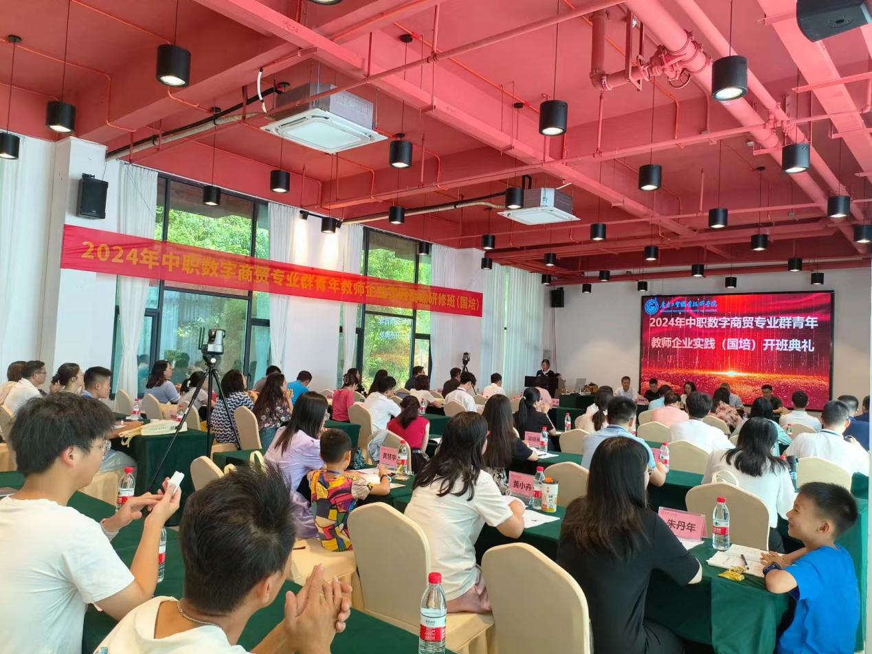 2024年7月15日下午,我校在广州市从化区百匠园会议厅隆重举办了“2024年中职数字商贸专业群青年教师企业实践高级研修班(国培)”的开班典礼。出席典礼的校内领导包括学校副校长赵红、继续教育与培训学院院长朱永平、教务处处长赵文龙、对外交流合作处副处长陈丽、经济贸易学院党总支书记李繁及副院长蒋晶。此外,从化区江埔街经济办主任罗惠津、广东省电子商务职教研究中心副秘书长周黄宁、国培项目的支持合作企业深圳华商联投资有限公司、广东恒富四海控股集团、广州一臣电子商务科技有限公司等企业代表等亦莅临现场,共有来自省内各中职院校的30名学员以及国培项目工作组全体成员参加了开班仪式。此次开班典礼组织严谨,汇聚了校政行企的领导和嘉宾。会议由经济贸易学院刘佳珺老师主持。