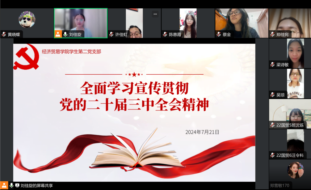 为此,经济贸易学员学生第二党支部全体党员同志密切关注会议动态,学习全会公报和会议精神,聚焦中国式现代化,结合自身工作及学习实际深入思考,形成学习会议精神的浓厚氛围和热烈反响。