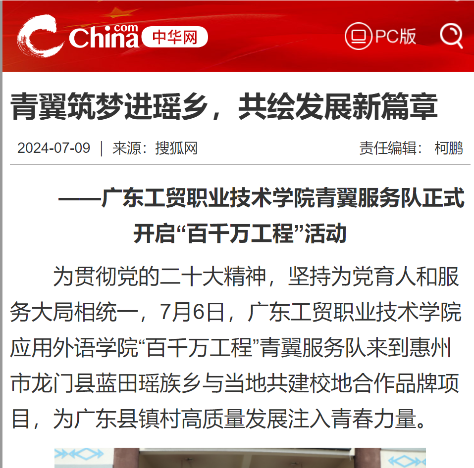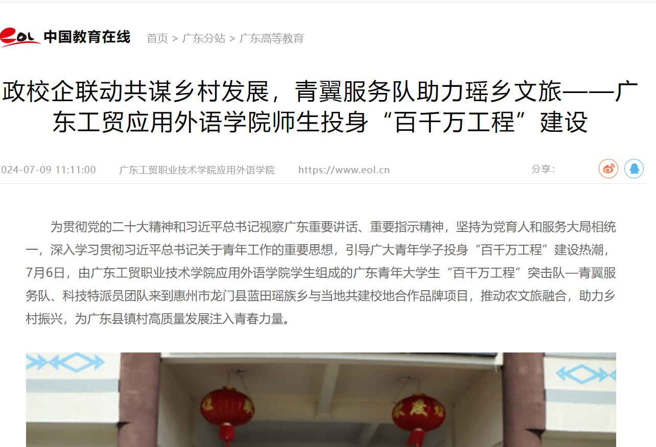 政校企联动共谋乡村发展,青翼服务队助力瑶乡文旅——广东工贸应用外语学院师生投身“百千万工程”建设