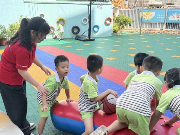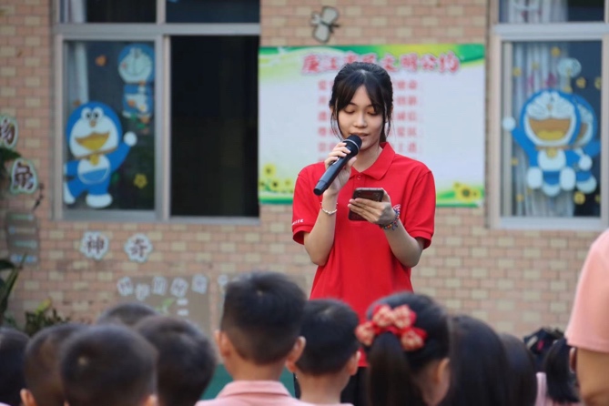 在支教活动的实施上,沉乡织梦实践队的成员们深入廉江市星海幼儿园与童心源幼儿园,以爱心与专业素养为当地儿童点亮知识的灯塔。通过一系列创意十足的教学活动,激发孩子们的学习兴趣,提升他们的普通话表达能力。队员们精心准备了普通话小课堂,化身推普小老师,通过讲故事和角色扮演等形式生动呈现普通话知识。寓教于乐的教学方式,让小朋友们在游戏互动中学习到更多普通话知识,掌握正确发音和语调。他们不仅学会了正确表达,还体验到了普通话学习的乐趣。支教队员们用实际行动与孩子们建立了深厚的情感联系,生动诠释了“教育帮扶”的深远意义与崇高价值。