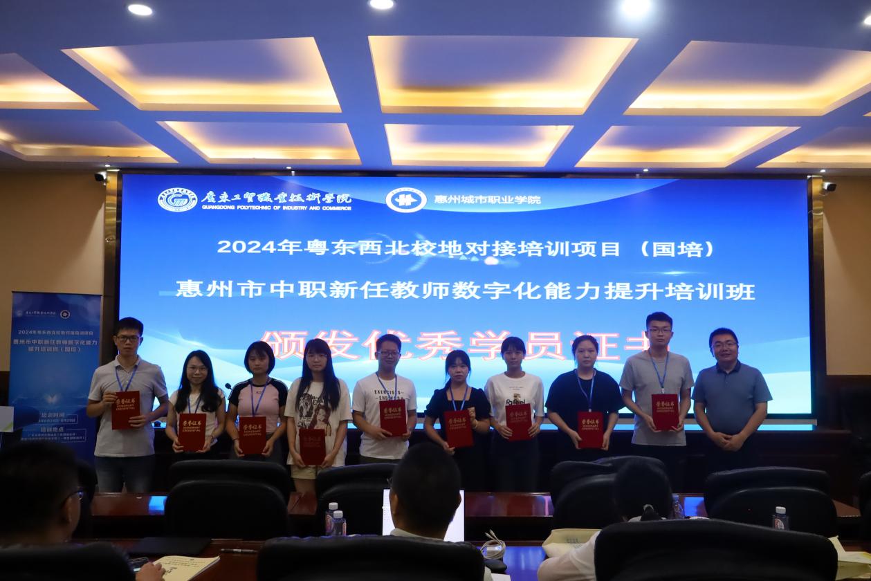 8月29日上午,2024年粤东西北校地对接培训项目——惠州市中职新任教师数字化能力提升培训班(国培)结业仪式在惠州城市职业学院举行。本次国培项目负责人、我校测绘遥感信息学院副院长高照忠,项目工作组成员吴萍昊、杨玲玲以及来自惠州市各职业院校的参训学员共同参加了结业仪式。仪式由国培班班主任吴金媚主持。