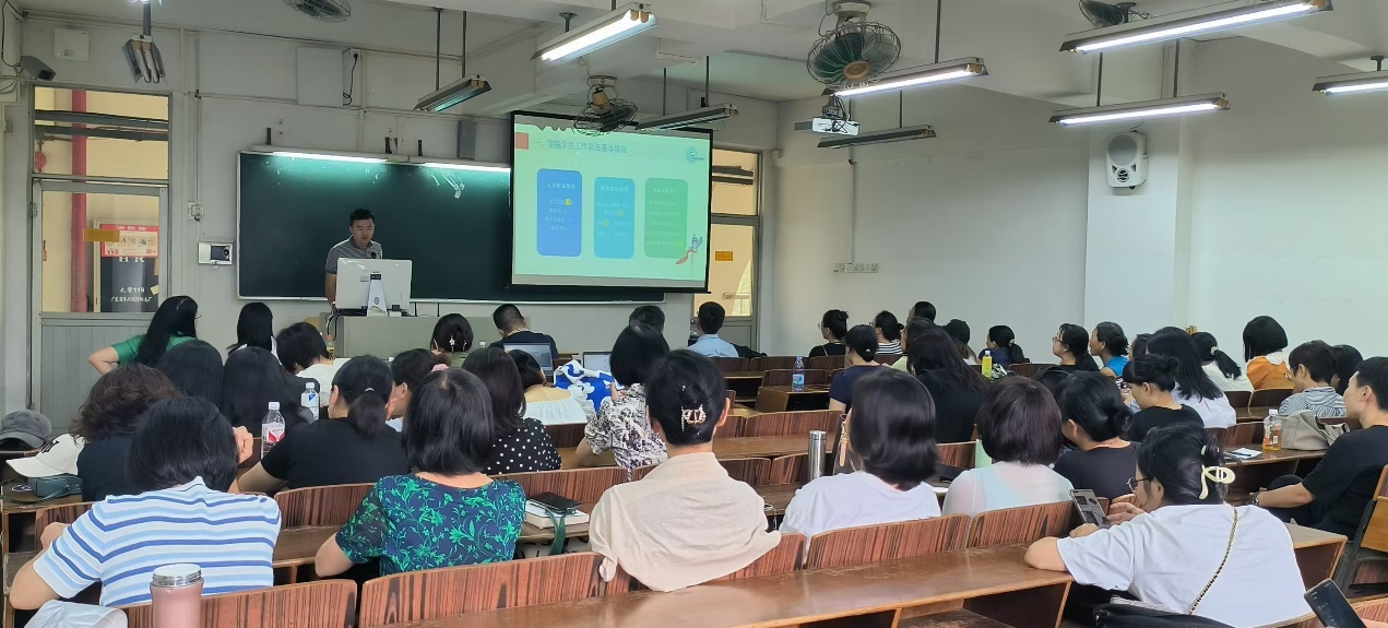 林耀佳从学生工作团队整体情况、上学期学生工作情况总结和回顾及本学期工作重点三个方面进行工作汇报,并希望参会老师围绕教育教研、学业朋辈成长“三导师”、思政工作、社会实践志愿服务四方面持续发力。