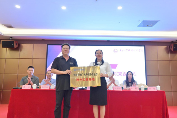 会议最后,学校党委委员黄雄志代表学校授予龙门职业技术学校“双百行动电子商务专业群校外实践基地”牌匾。