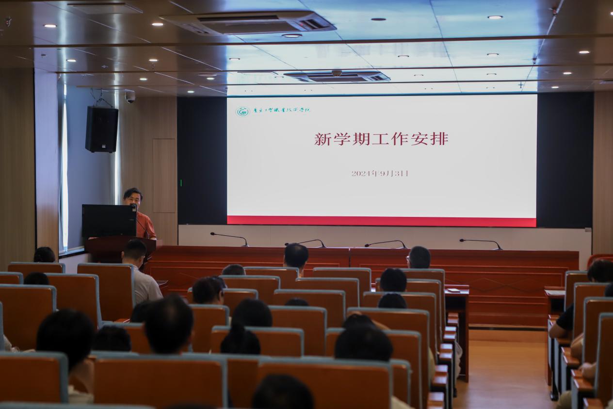随后,院长余棉水对暑期国培项目、夏季招生、实验室建设、师资队伍建设、课程思政申报等工作进行了全面总结,并分析了学院在新一轮双高建设申报、质量工程立项与认定工作中的机遇与挑战。他鼓励全体教职工在新学期提升能力,积极申报项目,为学院的发展贡献力量。